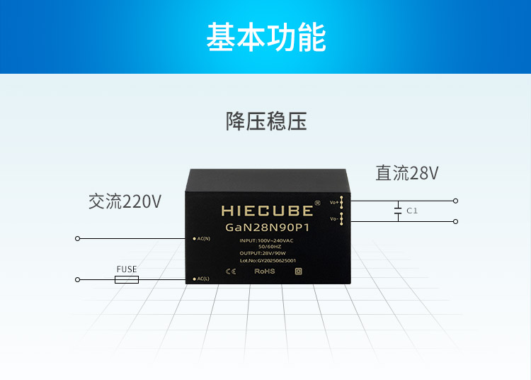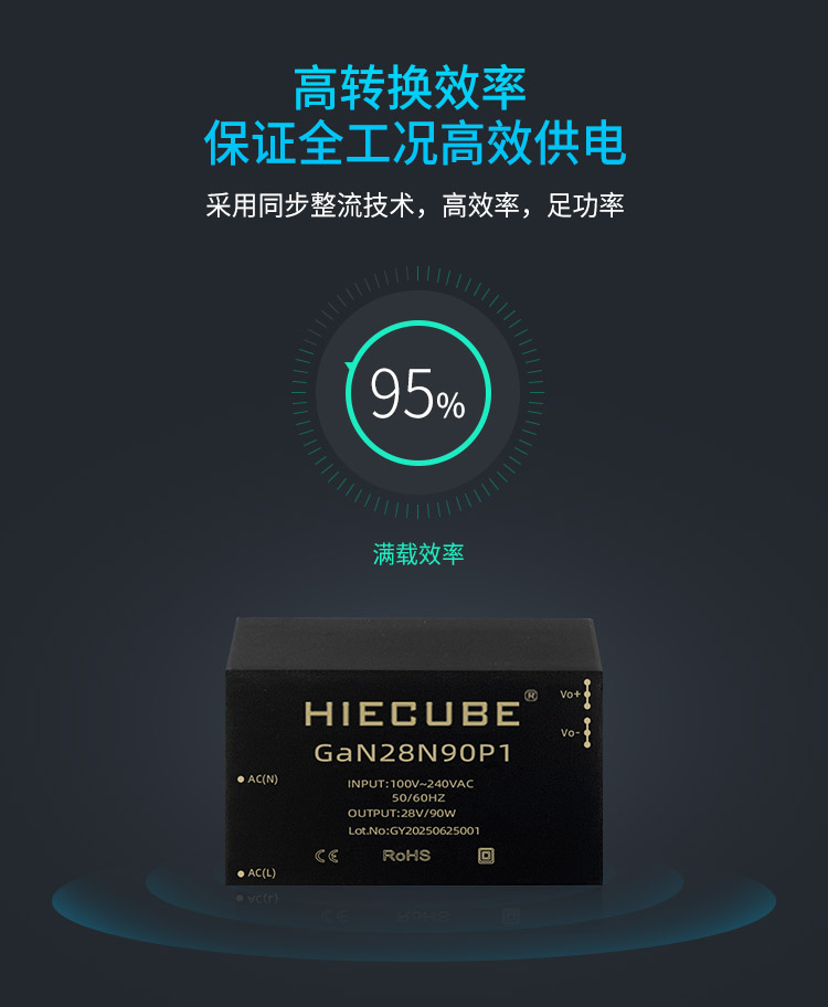品牌:HIECUBE/高能立方 型號:GaN28N90P1 隔離耐壓:3000VAC 輸出電壓精度:±1% 電源類別:AC-DC電源模塊 模塊質保年限:三年