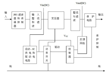 開關(guān)電源的主要電路由輸入、EMI(電磁干擾器)、整流濾波、功率變換、PWM控制電路、輸出等電路組成。
