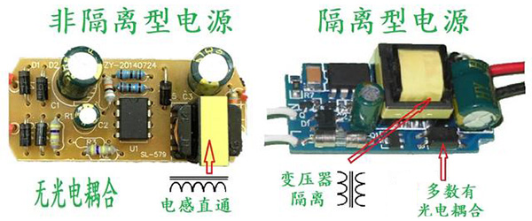 由電子元件組成的電源可分為開關電源、線性電源、阻容降壓型電源三種,其中隔離型線性電源帶有笨重的變壓器,很容易區分。阻容降壓型電源屬于非隔離型電源,下面說明下隔離型開關電源和非隔離開關電源的區分。