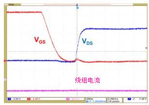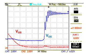 上圖所示為由于電路寄生效應(yīng)引起的具有分立MOSFET的相位節(jié)點(diǎn)電壓振鈴,使用模塊電源時(shí),具有連接兩個(gè)MOSFET的開關(guān)節(jié)點(diǎn)夾將高側(cè)和低側(cè)MOSFET之間的寄生電感保持在絕對(duì)最小值。在同一封裝中使用低側(cè)和高側(cè)FET可最大限度地減少PCB寄生,并減少相節(jié)點(diǎn)電壓振鈴。使用這些模塊電源有助于確保平滑的驅(qū)動(dòng)MOSFET開關(guān),即使在電流高達(dá)50A時(shí)也不會(huì)出現(xiàn)電壓過沖,如下圖所示。